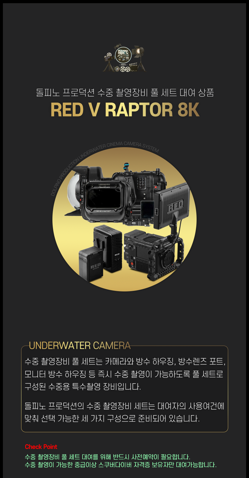 RED V랩터 8K + 노티캠 수중 하우징 수중촬영 풀 세트 대여상품