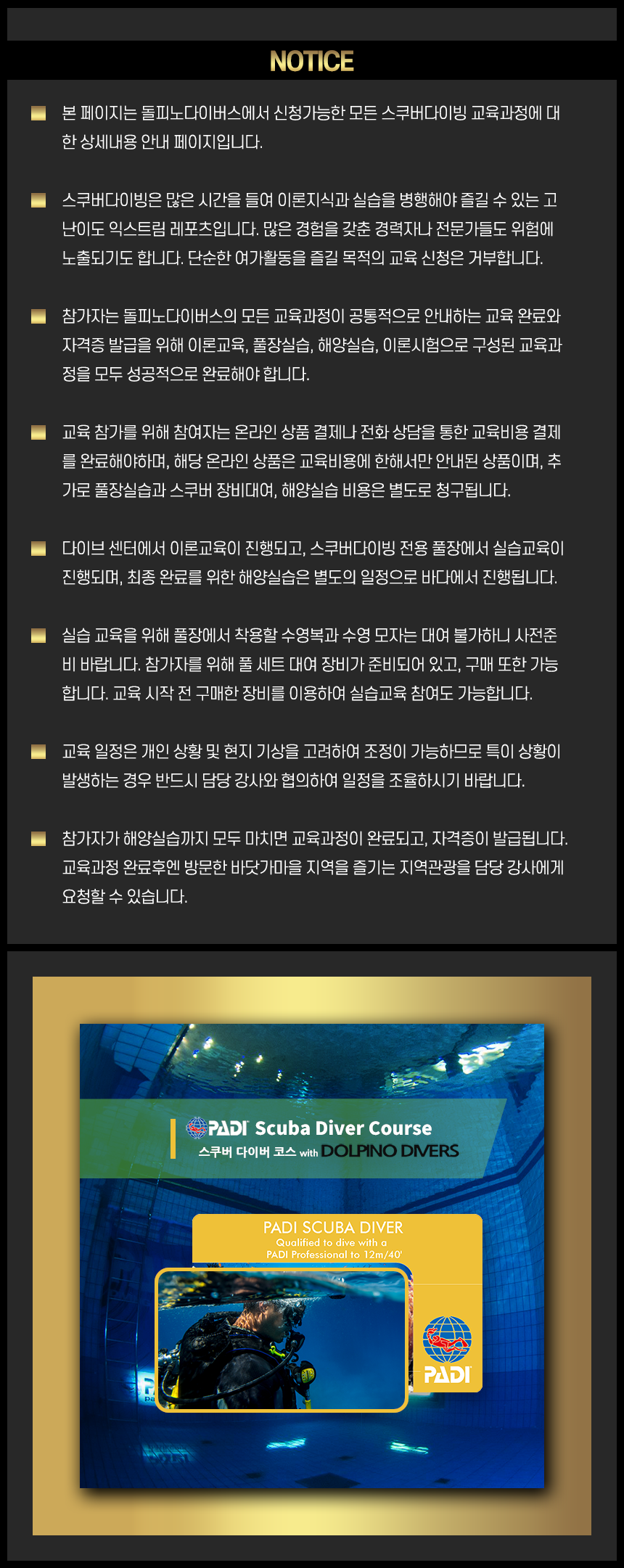 PADI 스쿠버다이버 코스 with 돌피노다이버스