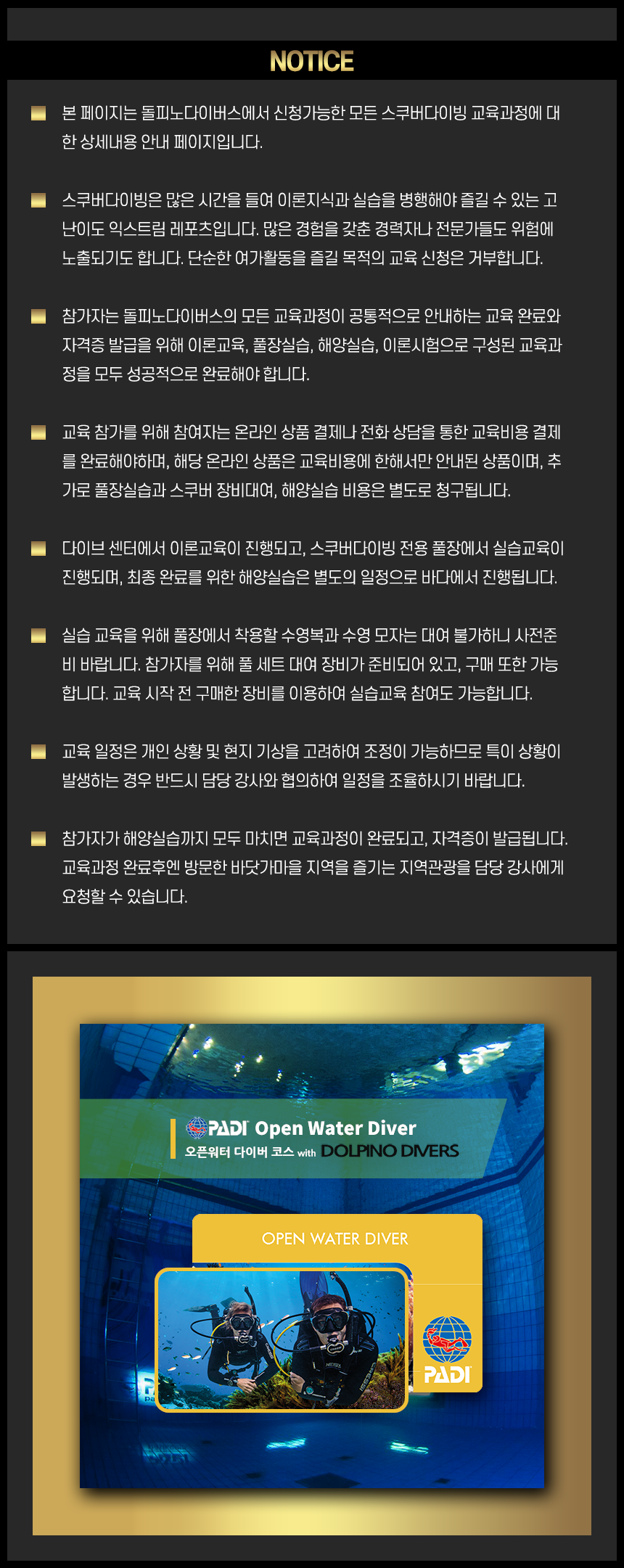PADI 오픈워터다이버 코스 with 돌피노다이버스