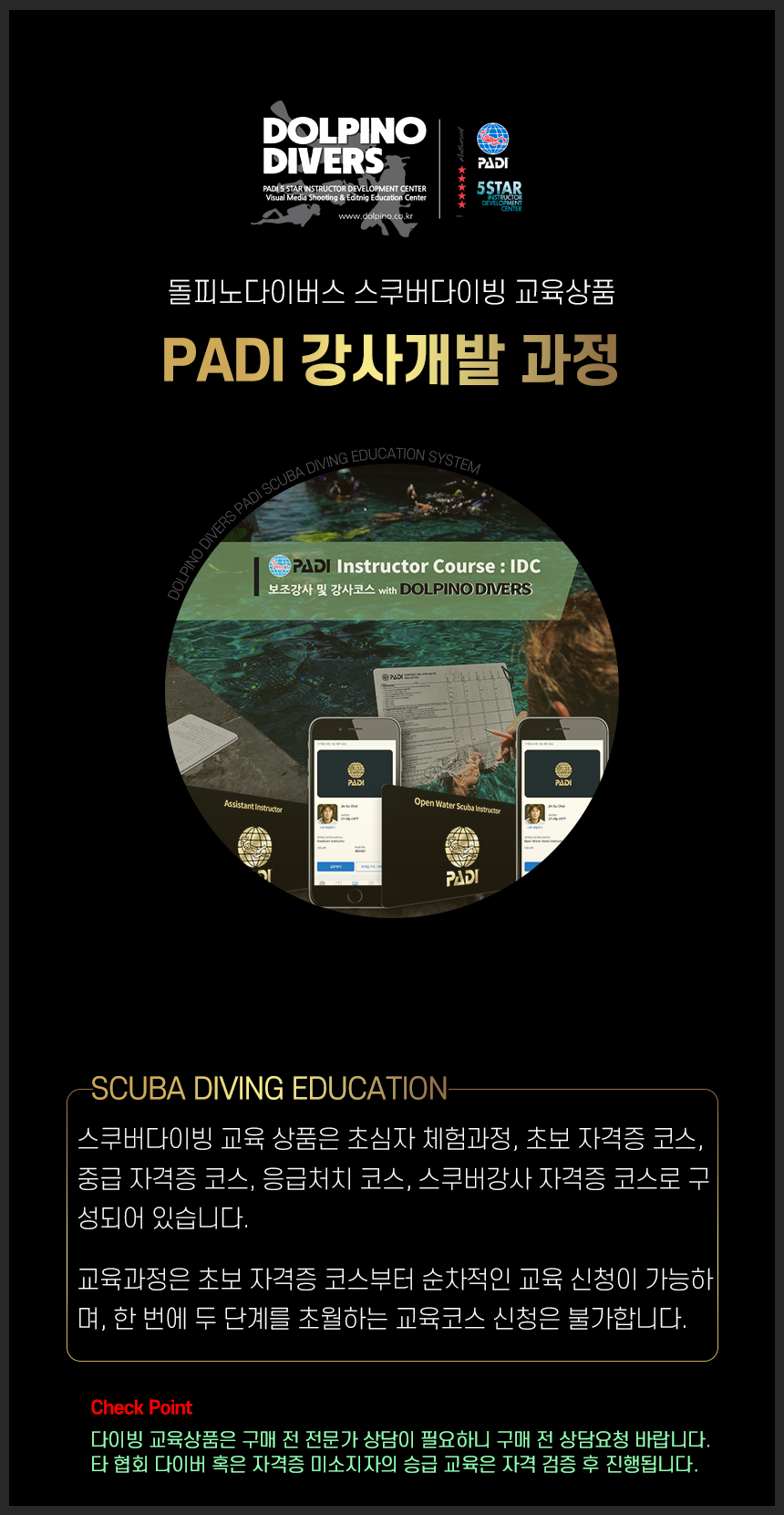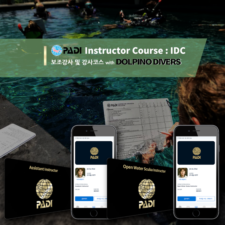 강사 자격증 취득을 위해 PADI 5 STAR 강사개발센터 돌피노다이버스의 강사개발 과정에 참여하세요.